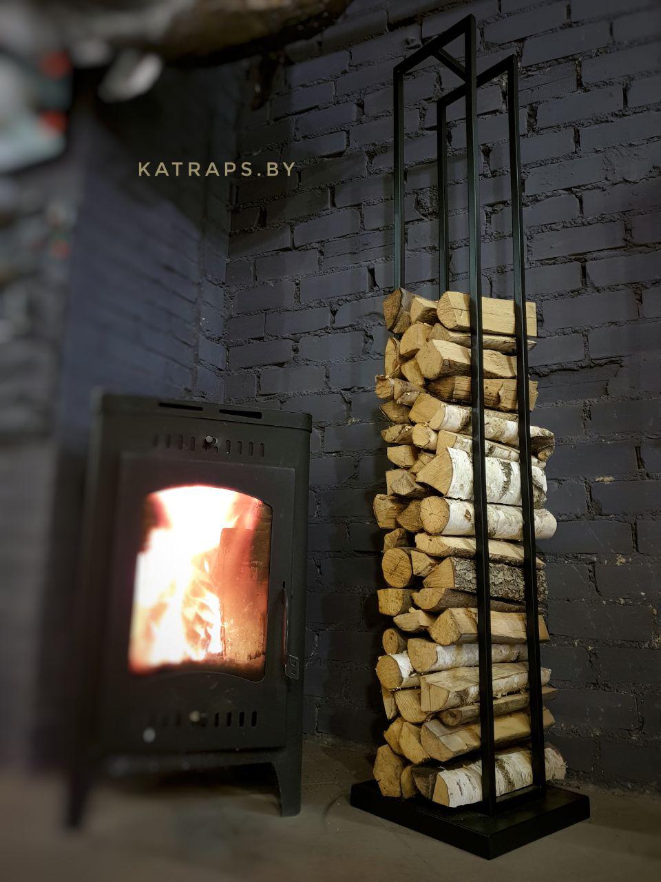 Дровница выполнена из прокатанной металлической профильной трубы и покрыта полимером. Цвет - чёрный.