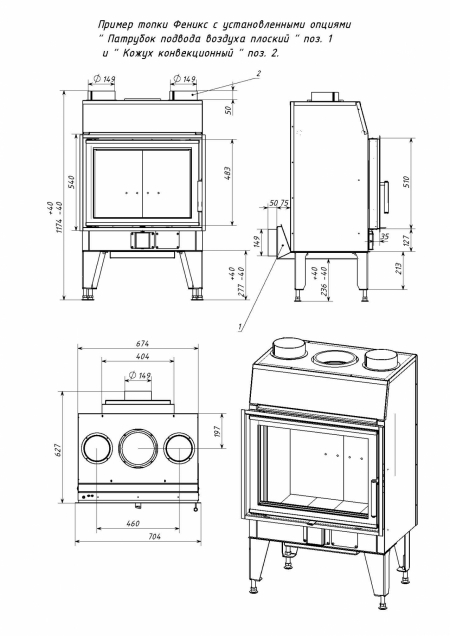 - В качестве опции вместе с топкой может быть поставлен конвекционный кожух. С помощью кожуха и воздуховодов можно развести теплый воздух в соседние помещения и отопить небольшой дом площадью до 150 м2.