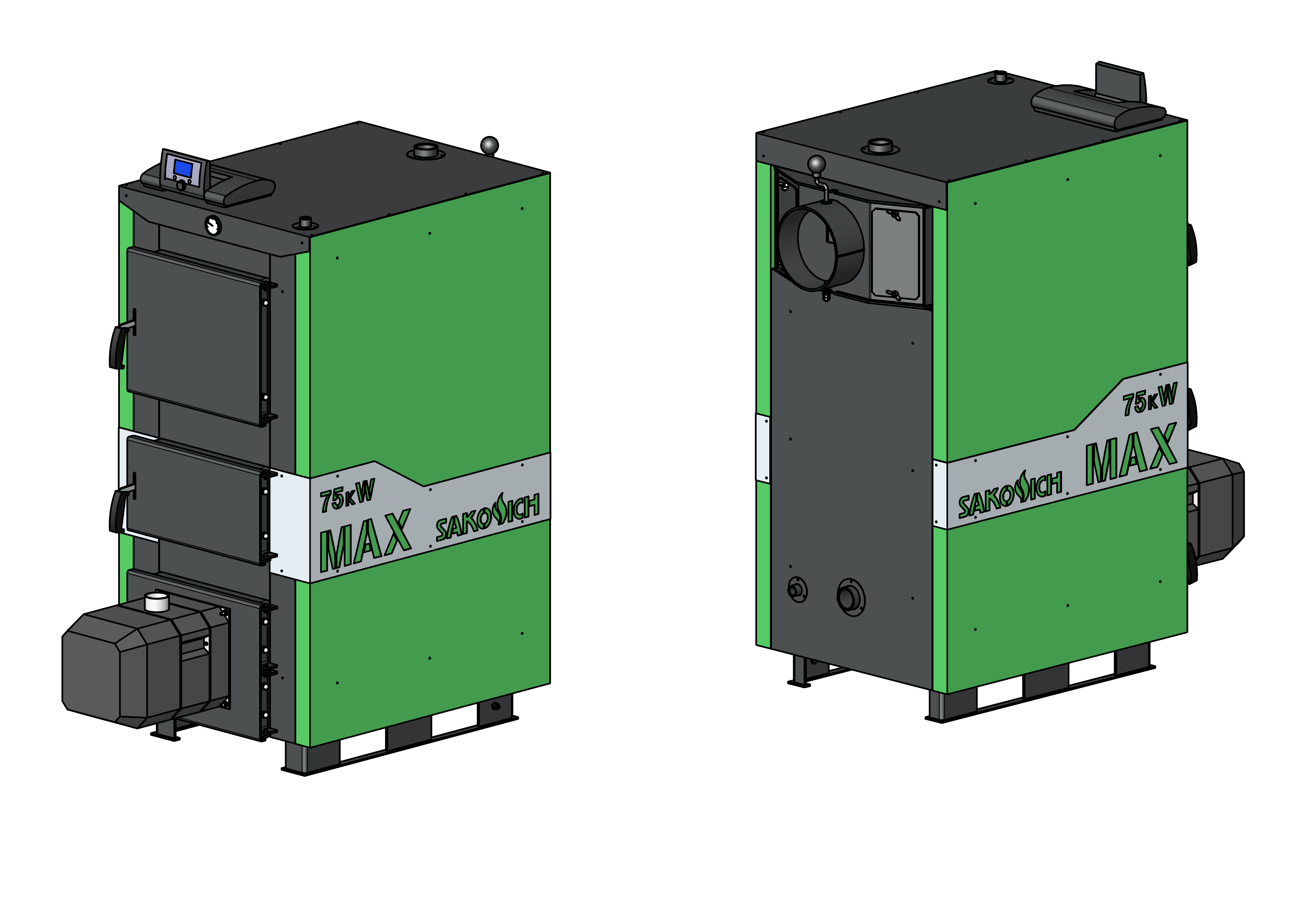 Промышленный твердотопливный котёл длительного горения PELLET MAX 75 кВт - водяной котёл центрального отопления многоквартирных домов, хозяйственных построек и магазинов, малоэтажных зданий и сооружений сельскохозяйственного, коммунально-бытового, промышленного назначения, а также для теплоснабжения технологических процессов. Длительность горения обусловлена многоходовым теплообменником, регулировкой воздуха для горения и большим объёмом топочной камеры. Периодичность загрузки топлива (длительность горения) зависит от его калорийности, влажности и длительности тления, в среднем 6 часов на дровах и 18 часов на угле. Пеллетный котел 75 кВт, отопление до 750 м.кв. Для сжигания пеллет любого качества, в. т.ч. агропеллет. Водонаполненная решетка изготовлена из бесшовной трубы толщиной 7 мм. Котловая сталь 6 мм. Горелка и бункер комплектуется отдельно!
