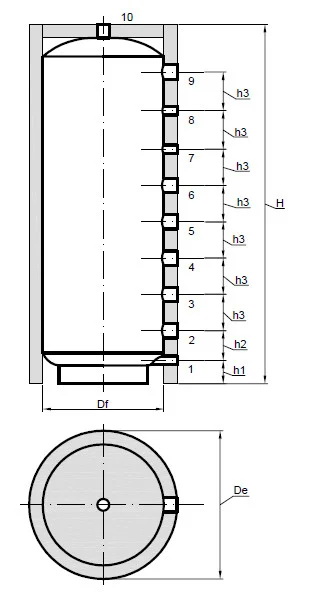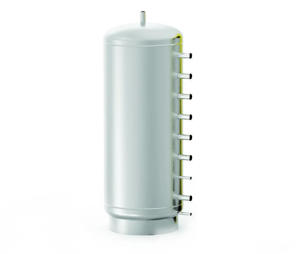 Буферная емкость имеет цилиндрическую форму и изготавливается из высококачественной черной стали с полиэфирной изоляцией. Для длительной бесперебойной работы и возможности устоять динамическим изменениям температуры, снаружи конструкцию покрывают термостойкой краской. Монтаж емкости не представляет особой трудности.