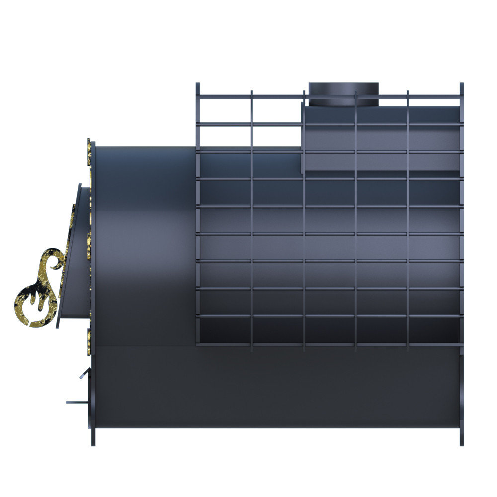 Конструкция «Елисей Премиум» в комплекте с чугунной дверкой и панорамным стеклом для лучшего контроля над сгоранием топлива. Встроенный колосник 8 мм рассчитан на весь срок службы печи. Топка (толщиной 8-10 мм) не поддается деформации от горения более чем 15 лет, чему способствует качественная сталь, используемая в производстве наших печей.
