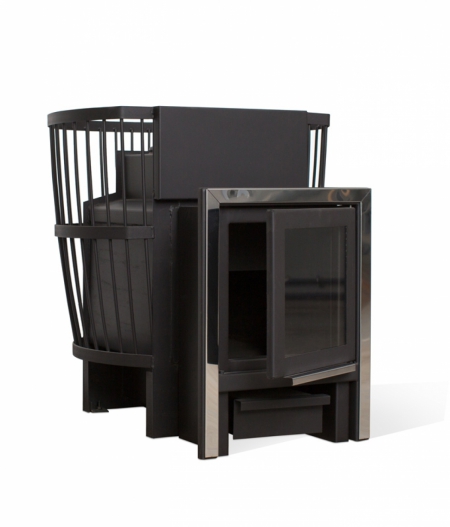 Выносная топка позволяет вам протапливать баню из специального помещения или комнаты отдыха. Эта универсальная дровяная печь с большим количеством камней расположенных в кожух-сетке в течении всей банной церемонии будет обеспечивать вас приятным и легким паром, а большая площадь соприкосновения топки с камнями никогда не позволят их залить.