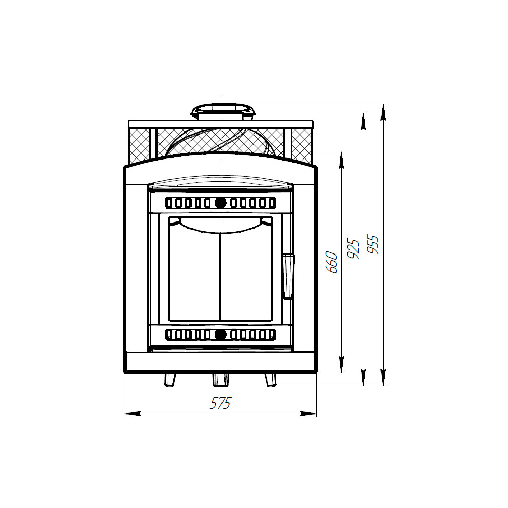 Декоративный портал и выносная дверка печки также изготовлены из чугуна, с возможностью варьирования длины топочного тоннеля под необходимую толщину стенки. Большое термостойкое стекло в дверце имеет защиту от копоти воздушной специальной завесой. На раме дверцы установлены два воздухозаборника для подачи воздуха на горение. Предусмотрена возможность размещения дверцы как с левой, так и с правой стороны. В банную печь Атмосфера встроен генератор пара, что помогает создавать в парилке различные режимы температуры и влажности. Компактная и экономичная модель. Кожух печи изготовлен в виде сетки из стали и полностью заполняется природными камнями, обеспечивая высокую динамику нагрева парильного помещения.