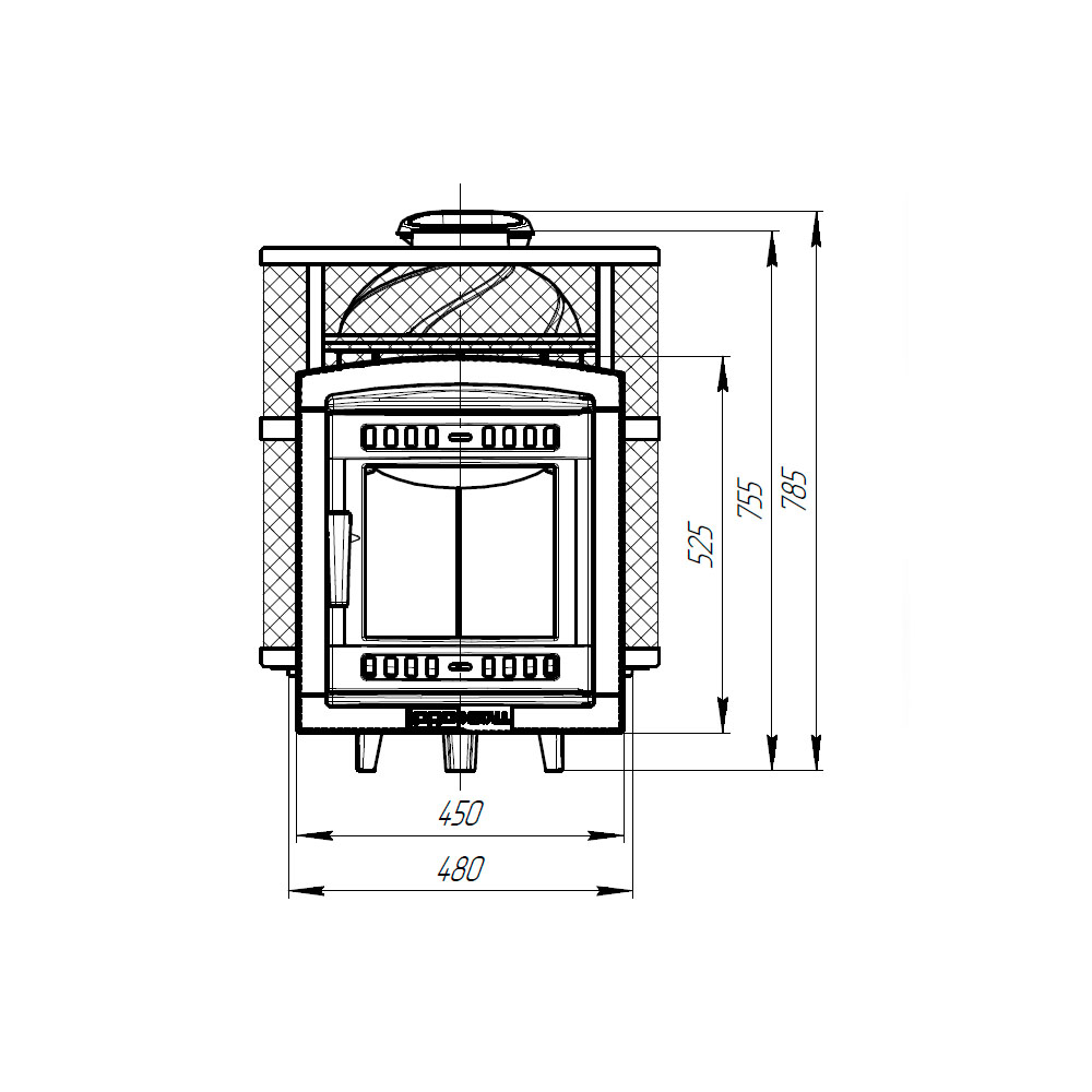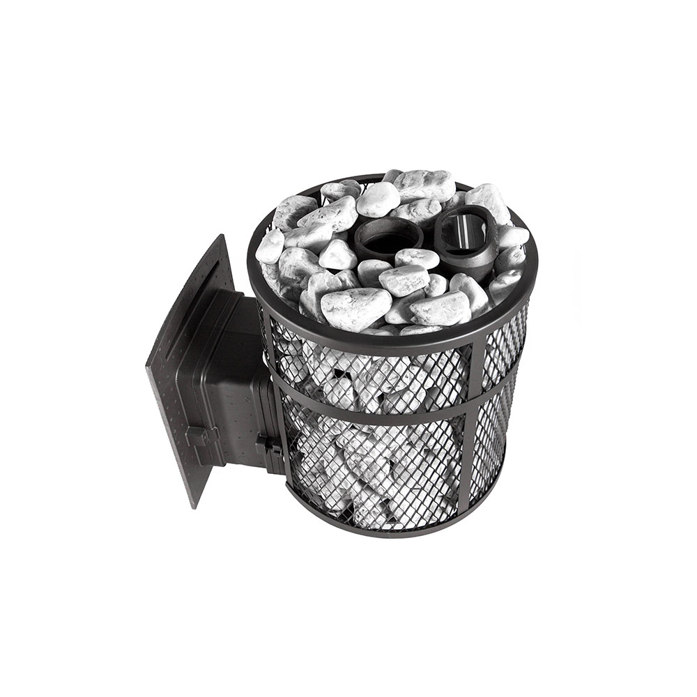Декоративный портал и выносная дверка печки также изготовлены из чугуна, с возможностью варьирования длины топочного тоннеля под необходимую толщину стенки. Большое термостойкое стекло в дверце имеет защиту от копоти воздушной специальной завесой. На раме дверцы установлены два воздухозаборника для подачи воздуха на горение. Предусмотрена возможность размещения дверцы как с левой, так и с правой стороны. В банную печь Атмосфера встроен генератор пара, что помогает создавать в парилке различные режимы температуры и влажности. Ультра компактная модель банной печи. Кожух печи изготовлен в виде сетки из нержавеющей стали и полностью заполняется природными камнями, обеспечивая высокую динамику нагрева парильного помещения.