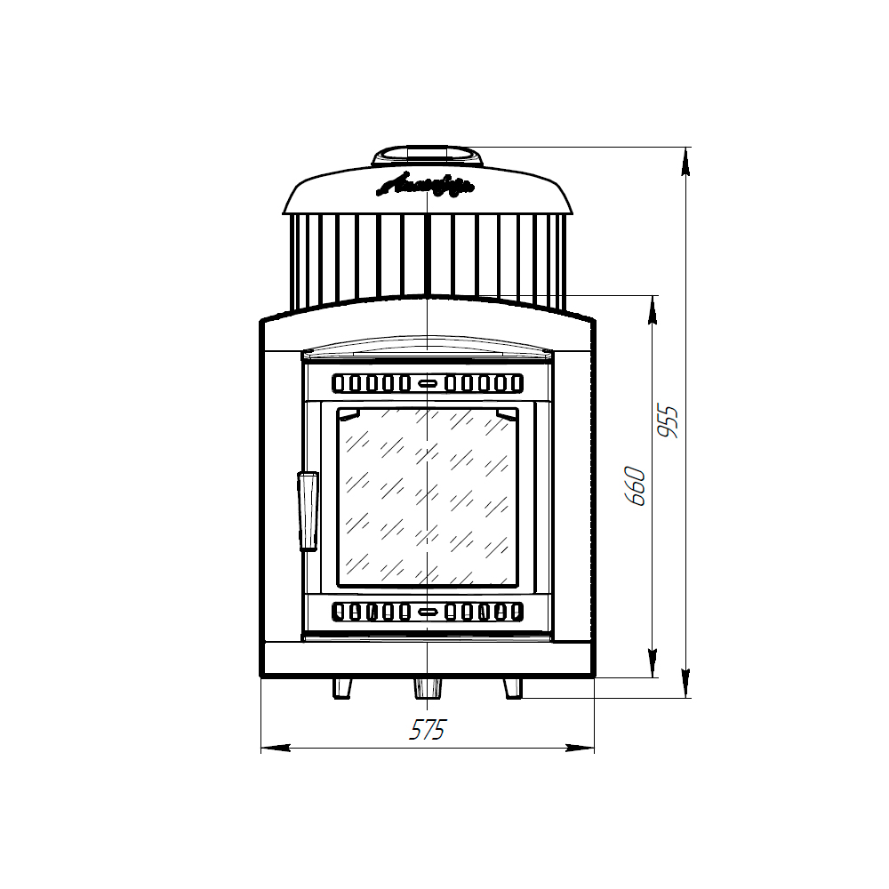 Декоративный портал и выносная дверка печки также изготовлены из чугуна, с возможностью варьирования длины топочного тоннеля под необходимую толщину стенки. Большое термостойкое стекло в дверце имеет защиту от копоти воздушной специальной завесой. На раме дверцы установлены два воздухозаборника для подачи воздуха на горение. Предусмотрена возможность размещения дверцы как с левой, так и с правой стороны. В банную печь Атмосфера встроен генератор пара, что помогает создавать в парилке различные режимы температуры и влажности. Практичная и компактная модель. Ламели с перенесенным рисунком придают конструкции печи целостность и оригинальный внешний вид.