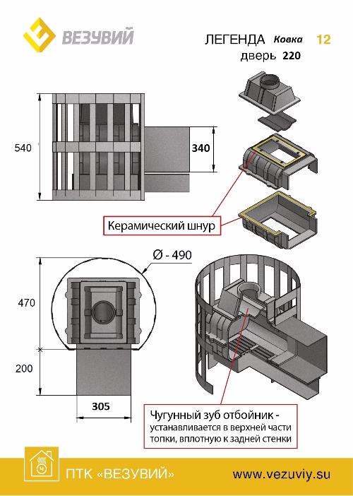 Банная чугунная печь Легенда Ковка 12(220) укомплектована чугунной герметичной дверцей Везувий 220 с жаропрочным стеклом «SHOT ROBAX». Конвекционно-вентилируемый кожух "Ковка" изготовлен из металлической текстурированной полосы покрашенной термостойкой краской и покрытая патиной «Бронза».