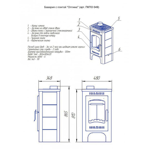 Небольшая дровяная печь с плитой Бавария Оптима Незабудка станет отличным решением для дачи или загородного дома, который не требует постоянного отопления и посещается хозяевами время от времени. Печь-камин такого типа сможет обеспечить помещение теплом