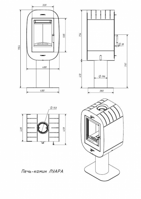 - Диаметр дымохода - 150 мм.
