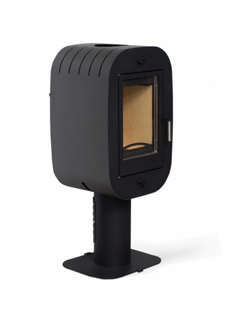 Компактная дизайнерская печь. Может устанавливаться свободно в помещении без примыкания к стене. Оригинальный дизайн делает печь доминантой в небольшом клубном помещении - бильярдная, бар, музыкальная комната. Подходит для обогрева небольшого помещения площадью 30-60 м2. Дверка высотой 310 мм. Размер поленьев 30-32 см вертикально. Подсоединение к дымоходу сверху. Система очистки «чистое стекло».