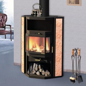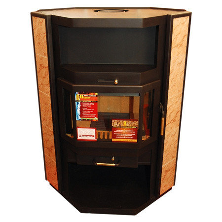 Пристенно-угловая печь с панорамным обзором разработана как основной или вспомогательный отопительный прибор помещения до 90 м2.