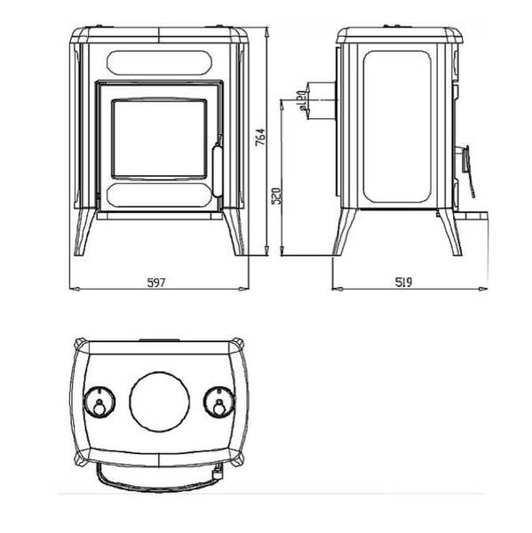 - Диаметр дымохода - 120 мм