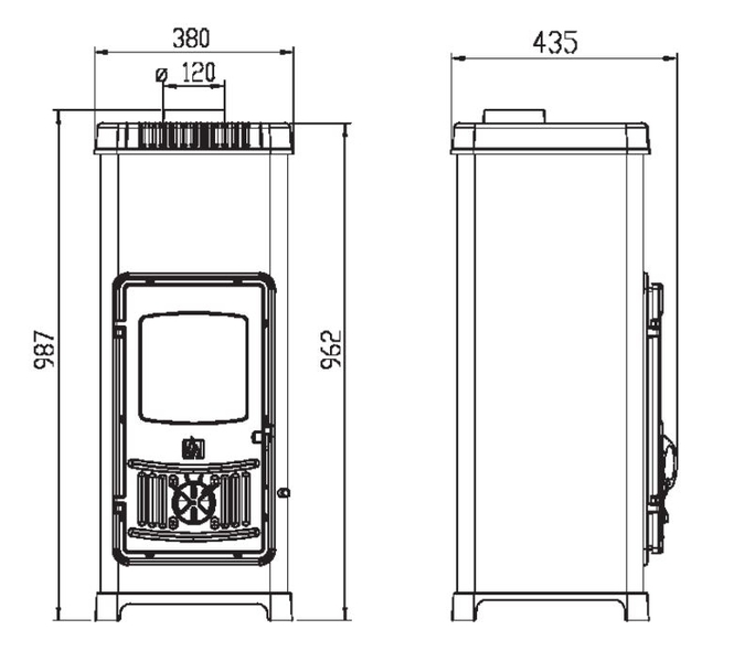 • Диаметр дымохода - 120 мм