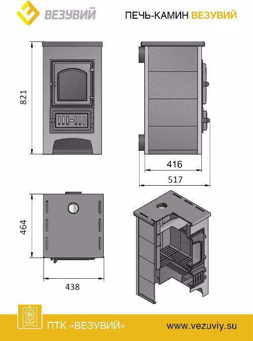Печь-камин ПК-01 (270) от производителя Везувий. Работает на дровах. Предназначеная для обогрева помещений (дома, дачи) объемом до 150 м3. Для изготовления дровяной печи Везувий ПК-01 (270) используют высококачественную конструкционную сталь, что обеспечивает продолжительный срок службы более 10 лет. Элементы печи Везувий ПК-01 (270) выполнены из чугуна. Печь оснащена дверью Везувий 270, которая имеет жаропрочное стекло. Сверху печи расположена чугунная варочная плита, что позволяет готовить на ней пищу. В данной модели предусмотрен теплообменник. Футеровка топки изложена шамотом из высококачественного сырья, по бокам печи Везувий керамические вставки. Печь-камин Везувий ПК-01 (270) бежевый работает до 5 часов на одной закладке дров. Также в печи предусмотрен - «Турбореактивный» режим разогрева, он обеспечивается за счёт подключения электрического вентилятора.