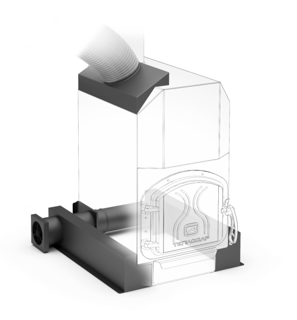 Теплосъёмник предназначен для сбора разогретого в конвективных трубах воздуха и отвода в соседние помещения при помощи гибкого алюминиевого воздухоотвода диаметром 120 мм. Устанавливается без дополнительного крепежа.