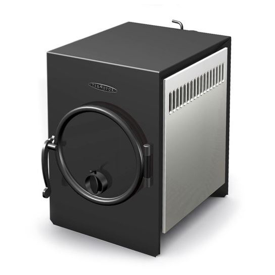 Боковые панели снимают конвекционное тепло со стенок печи и экранируют исходящее от них инфракрасное излучение. Верхняя горизонтальная поверхность вмещает сразу несколько единиц посуды. Сменный чугунный колосник обеспечивает равномерное горение. Печь отличается оригинальным дизайном, поскольку она изготовлена без единого видимого сварного шва.